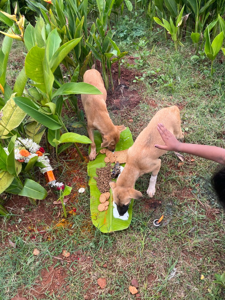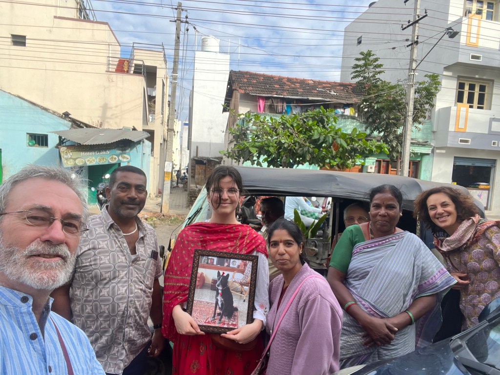 Recent guests of Mysore Bed and Breakfast, from Germany, playing with the dogs. Kaveri with Luca and Gingee When first adopted, a few weeks ago.