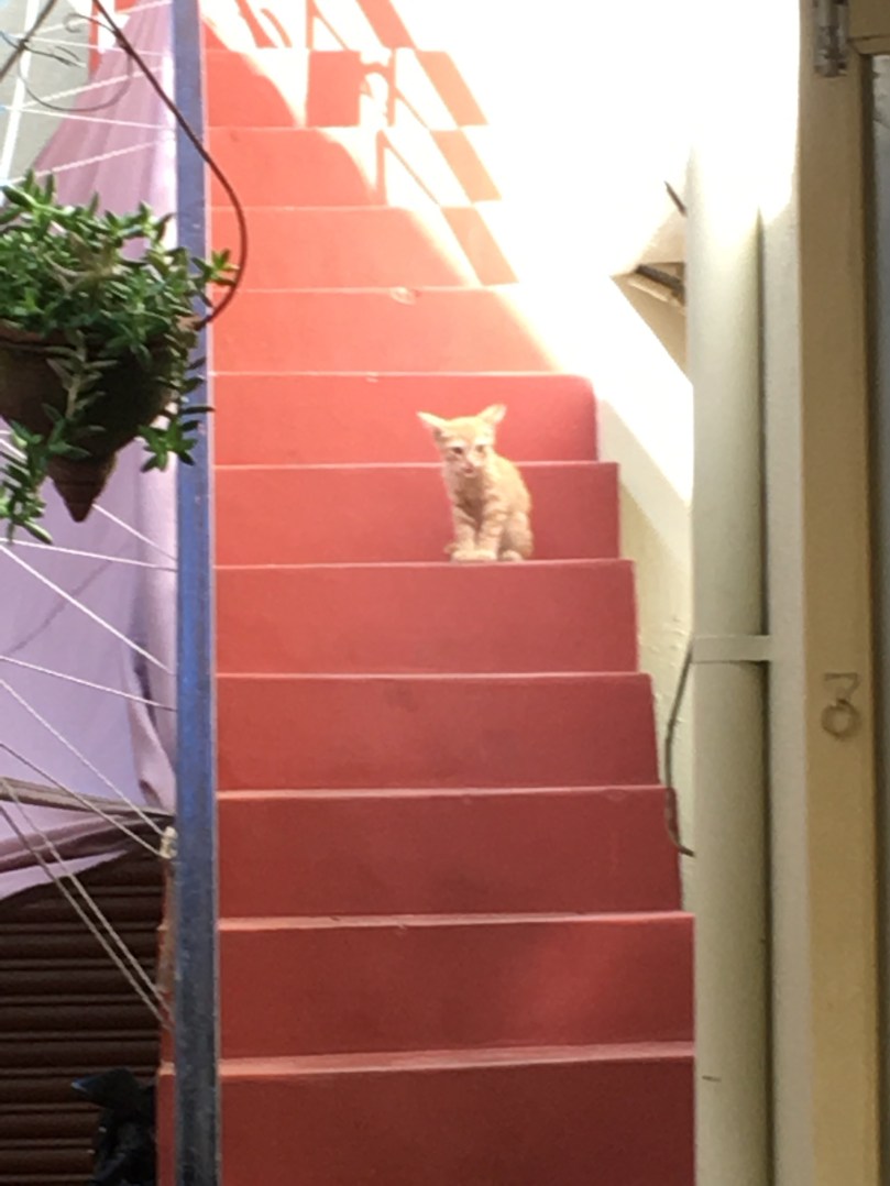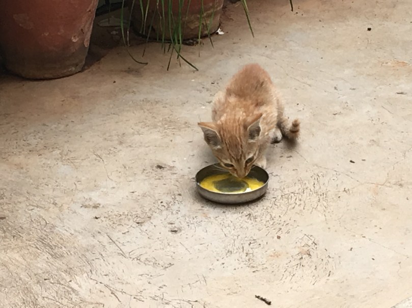 So we fed it a bit of egg. Personally I’ve an open mind about these things. But cats are not BIG in India and well there are two bossy women here (yes Manjula and her side kick Lucie) me I’m way down the pecking order.