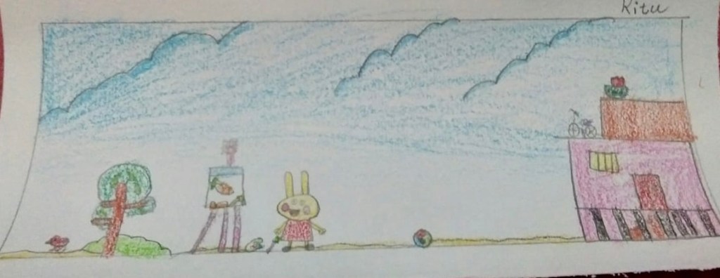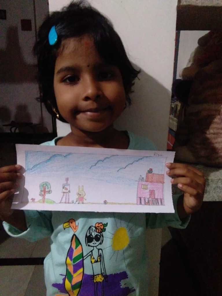 Aadrika the immensely talented artist who created this wonderful portrait of the women in my life visited with Somesh and his six year old daughter Ritu (check her own art here) to photograph the painting so we can have prints made for some of our friends around the world. Whoopeee!