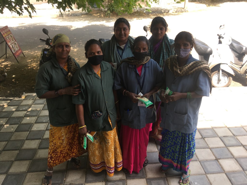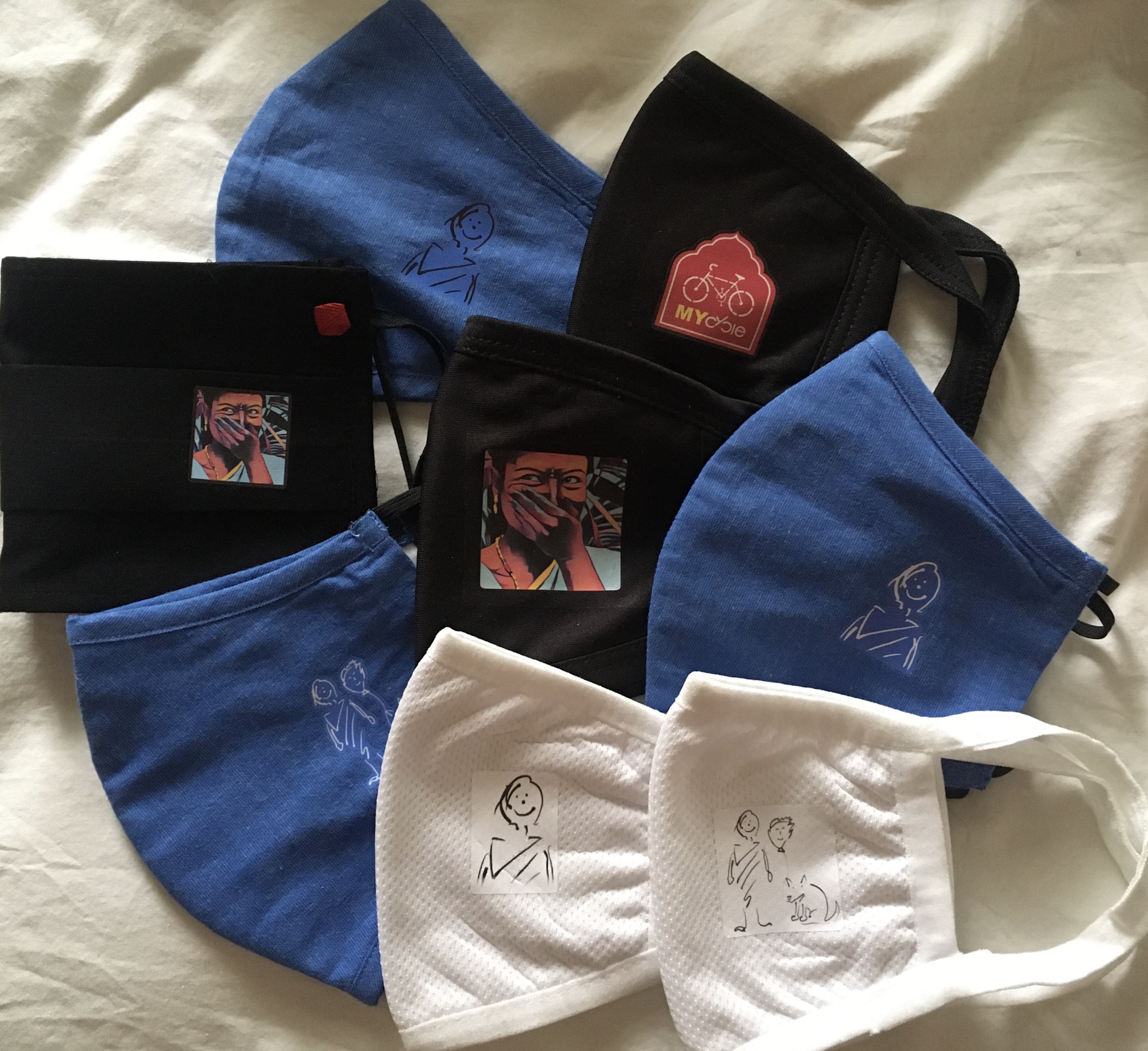 Vasanth and Satish modelling our mycycle masks but the big favourite is …the one where Manjula seems to be sniggering and who years before the pandemic was telling us to mask-up, modelled by Rakesh aka Peter PanAnd masks have been donated for the vaccinators for when they finish work. Many cycles have been gifted here for Sowbhaghya’s son Naveen.