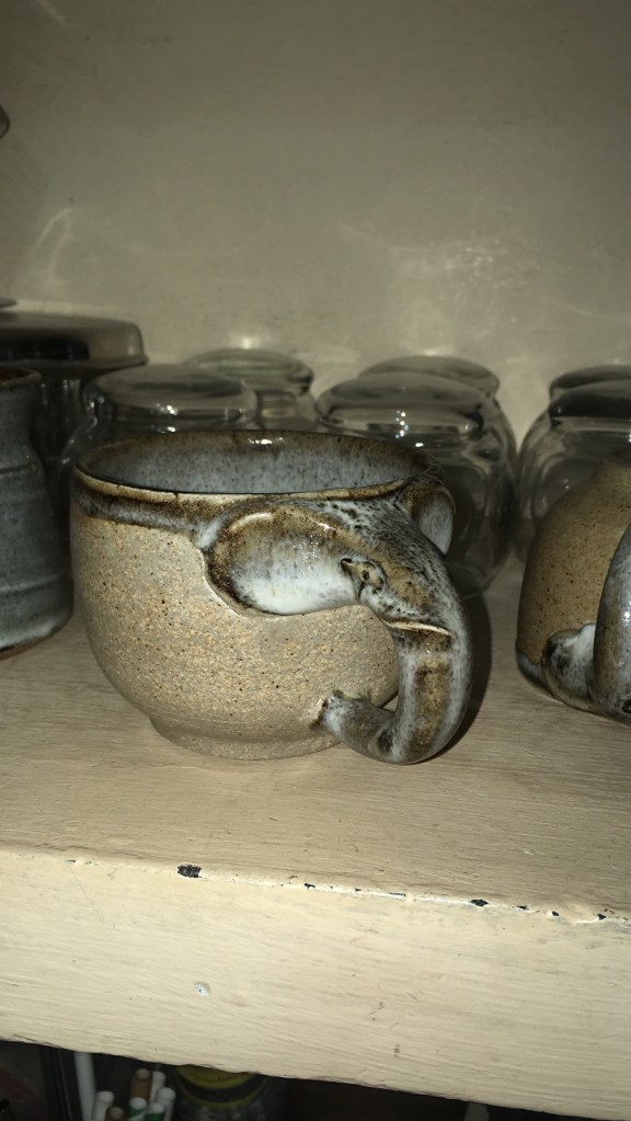 From the left steel glass ( I know it’s not glass, just ask an Indian) can be used anywhere and everywhere. Middle, one of our favourite cups with emotional attachment so can only be used in upstairs hall (lounge for you foreigners) and number three can be used anywhere in the house or downstairs sit out as we care less. The most precious, heaps of history and irreplaceable so use is severely restricted.