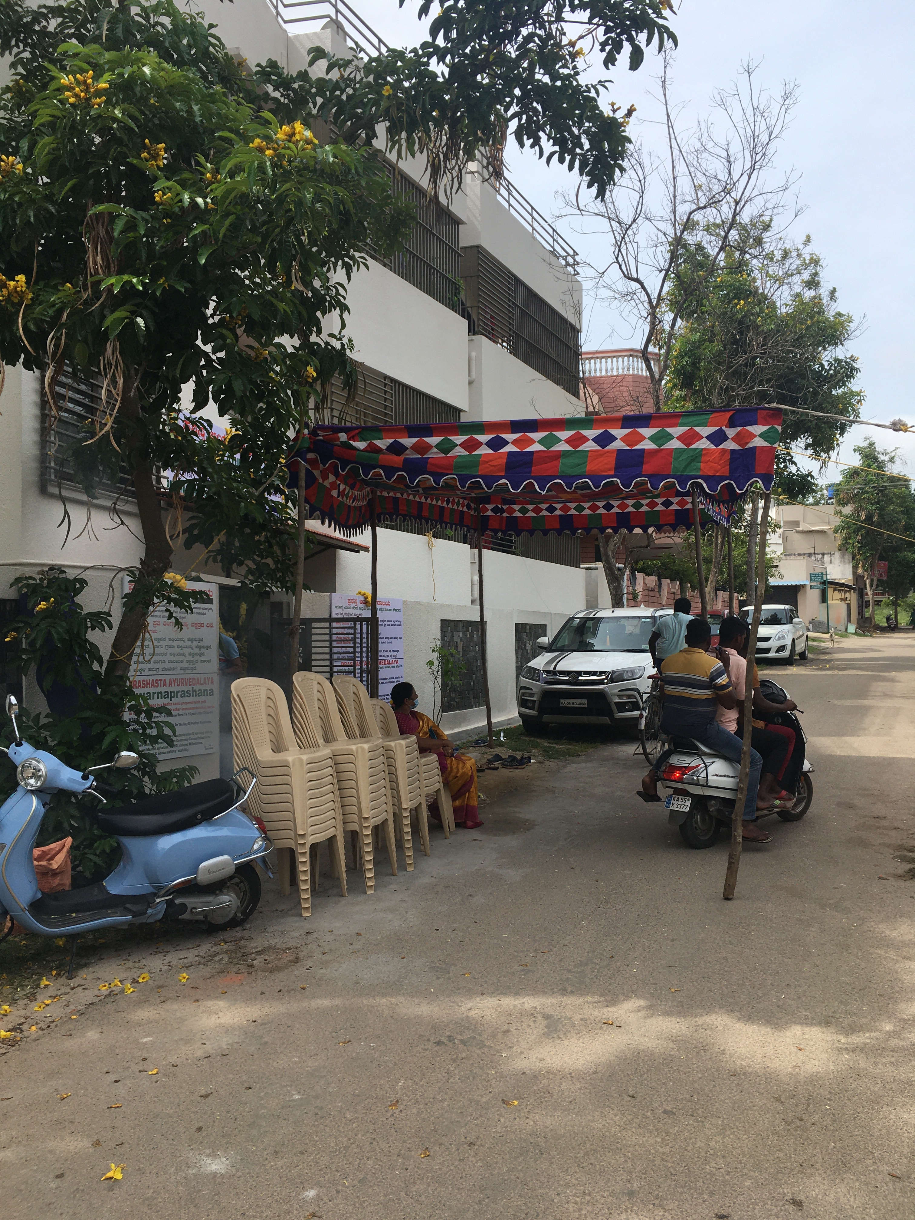 Sunday morning puja for a newly opened Ayurvedic Centre with the help of Satish’s kids Sukrutha and Pranav and I’ve forgotten the name of the enchanting two-year old.
