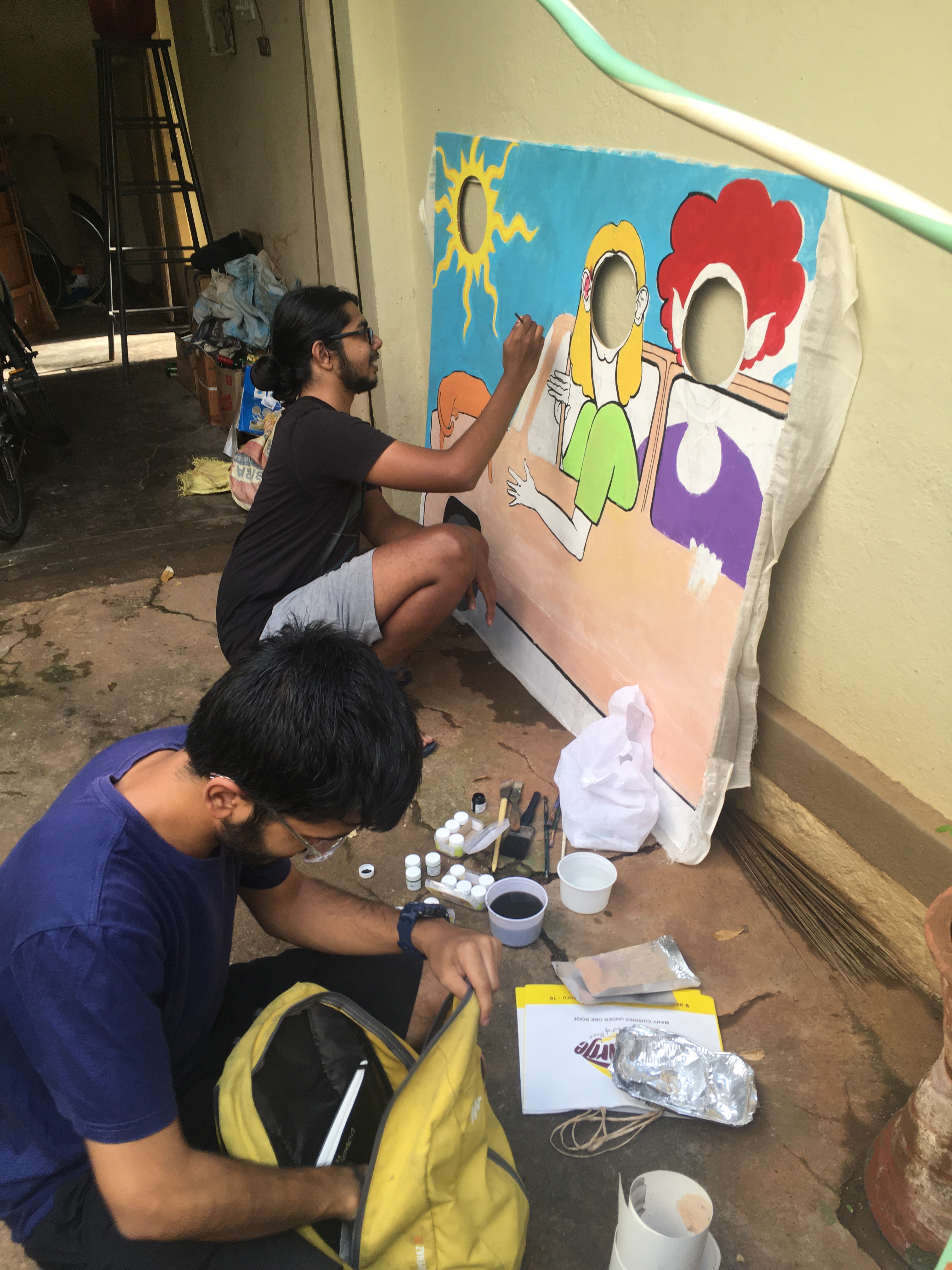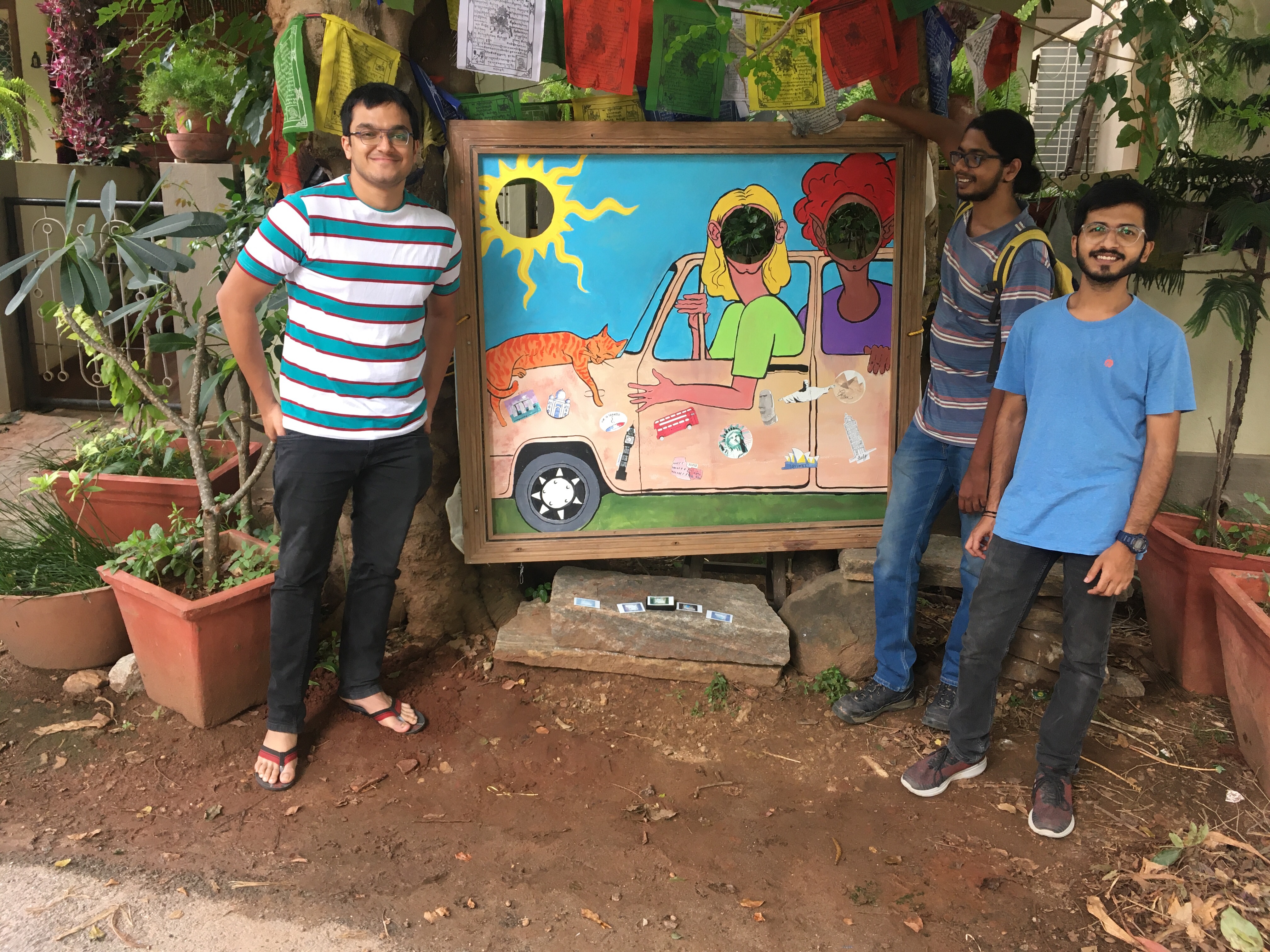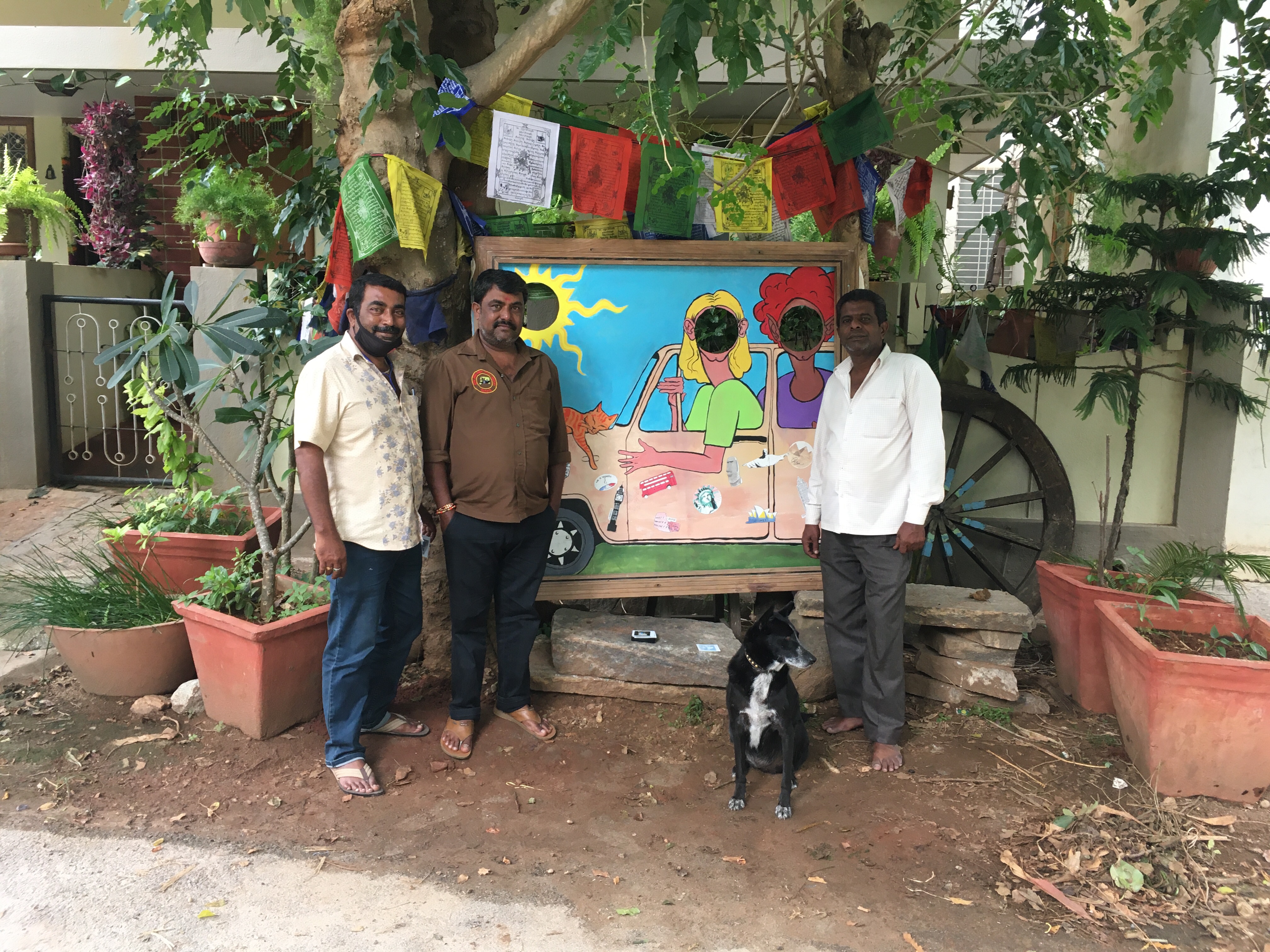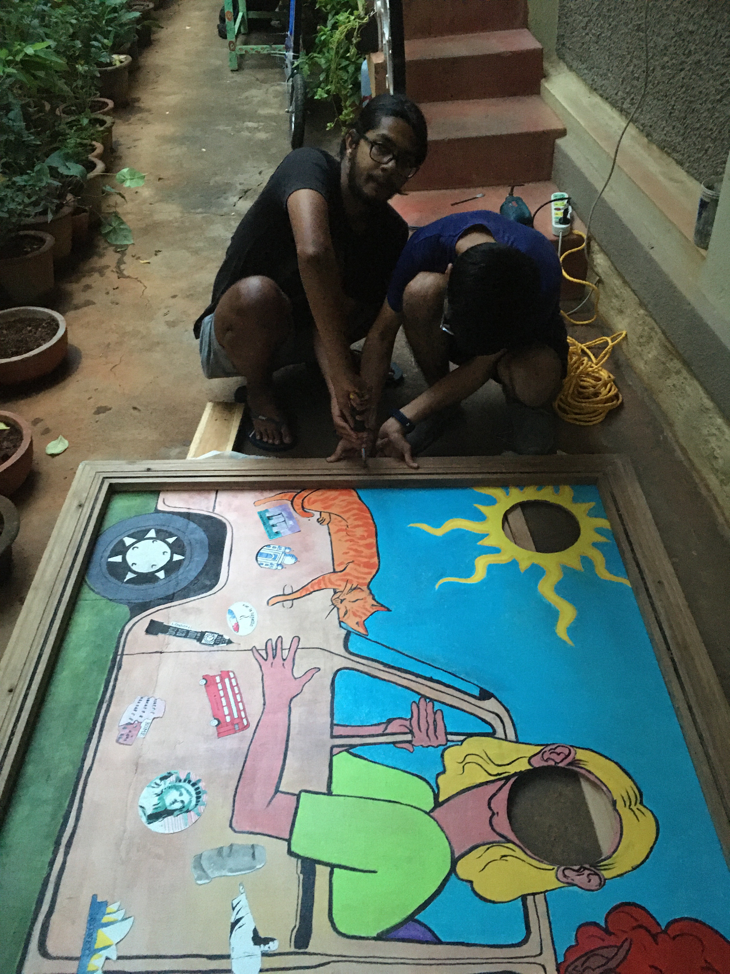 We’ve now got two paintings by Cinderella, more here and hereKaran a student at CAVA Art College is creating something to entertain.Tom and Amy helping outby kindly sponsoring the meals for the elderly people living in the Ashram (not the children’s home!)Tanuja, one of the MyCycle Directors, helping plan the garden with a little shopping tripIt’ll look better in a couple of years 😉planting a special tree for ManjulaSowbhaghya with her new T shirt