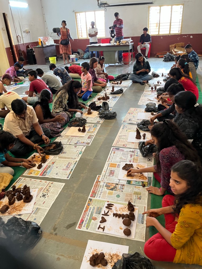 We piloted an idea to introduce young dynamic artists to children at Kaliyuvamane who remained at school during the summer holiday.