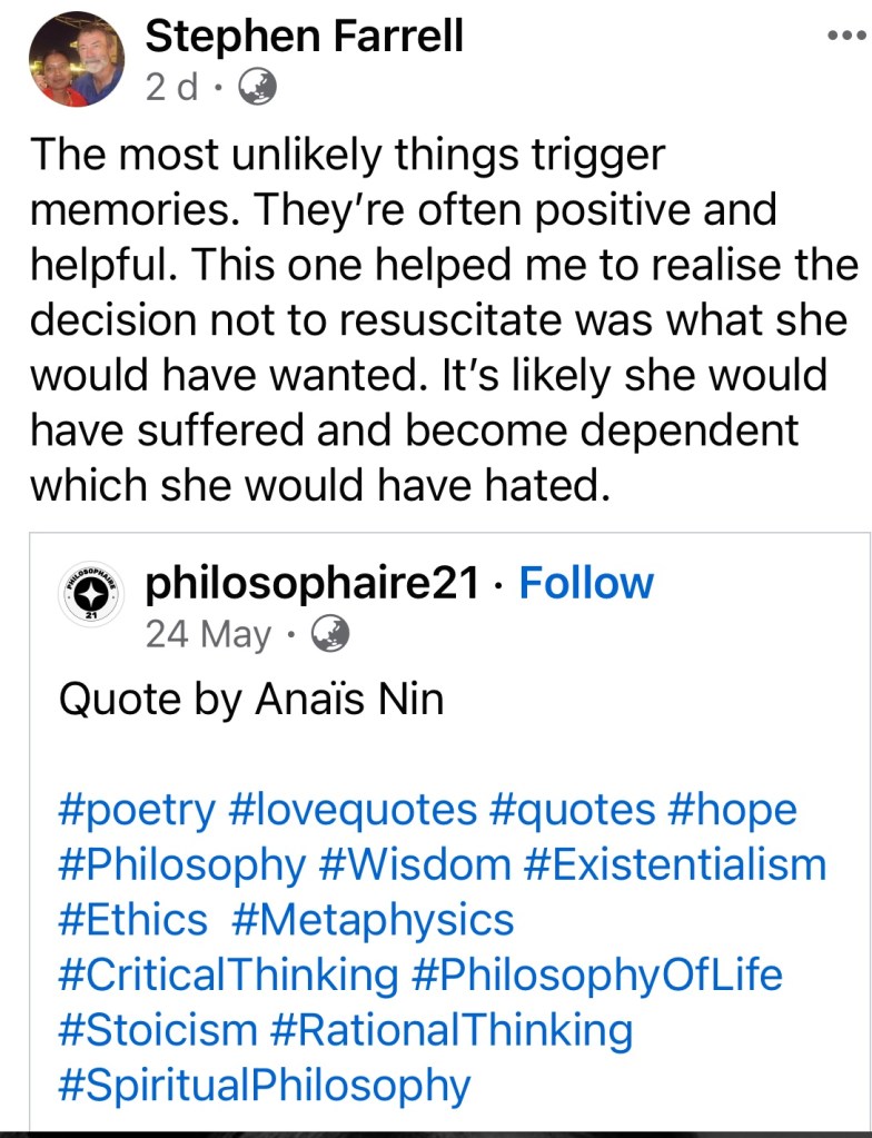 I firmly believe that grief is always with us but becomes more manageable as we fill the space around it with important valued people and ‘things’ we do.