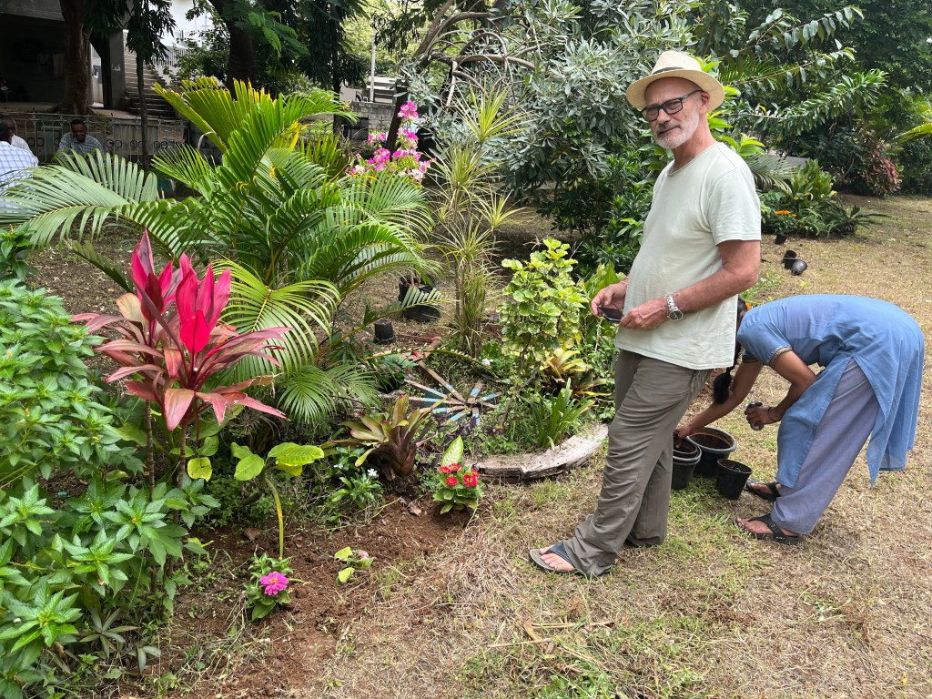 Here are our current guests Ina— the stalwart— who has visited us at Mysore Bed and Breakfast, almost every year for at least a month (with a break during the pandemic) and John, also a ‘glutton for punishment’ as he’s a returner —who we haven’t yet scared away — Settling in and helping us plan our rememberances.