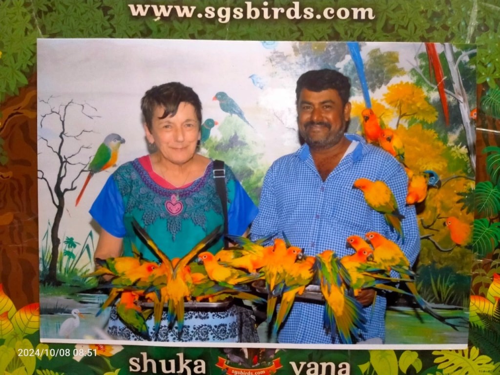 Ina came every year (except during the pandemic) from that first visit, for a total of ten years. She became a very close friend of my wife Manjula and a great support to me helping me grieve Manjula. She was our favourite and most regular guest, here Ina is promoting us with the new mug and proving she became an essential part of the team (furniture!).