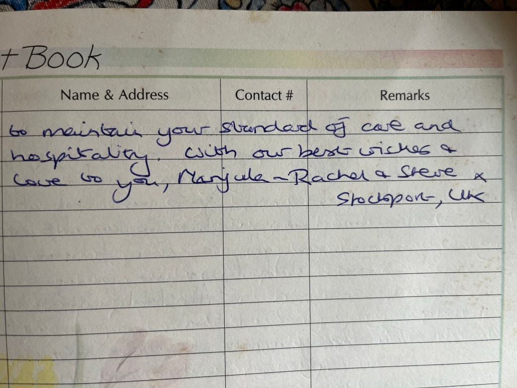 If only I’d remember to ask more guests to write in it, as it proves to be a real tonic.
