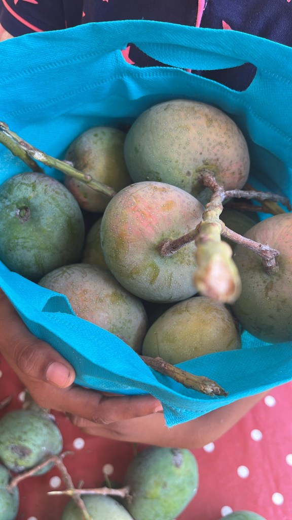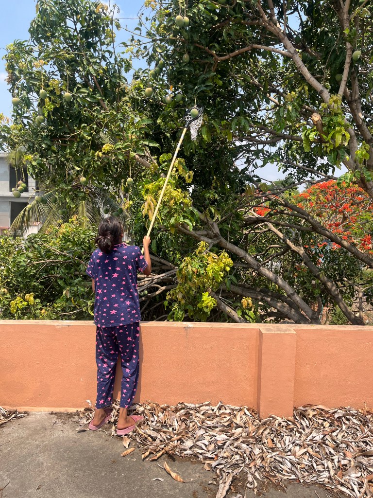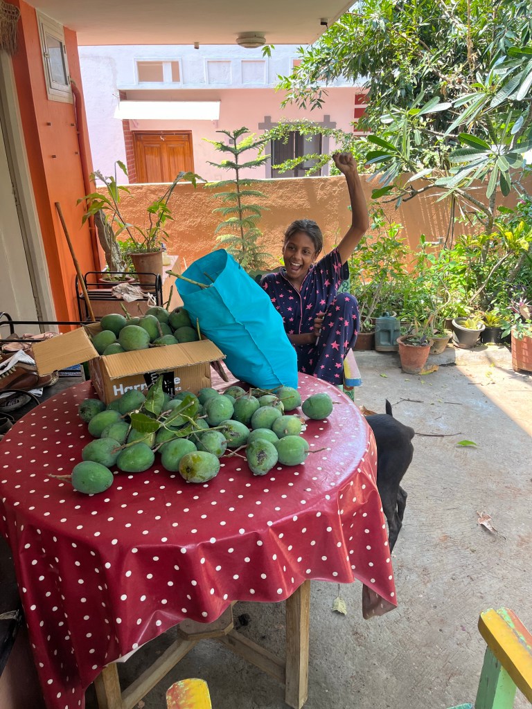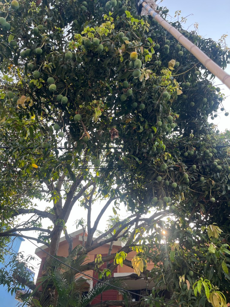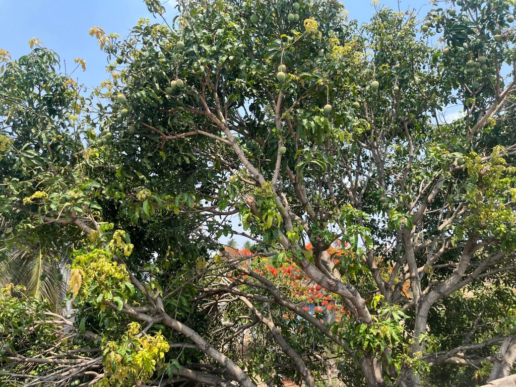 At our new house, we’re now hearing the thud of mangoes landing (and not just cricket balls hitting the bat. )