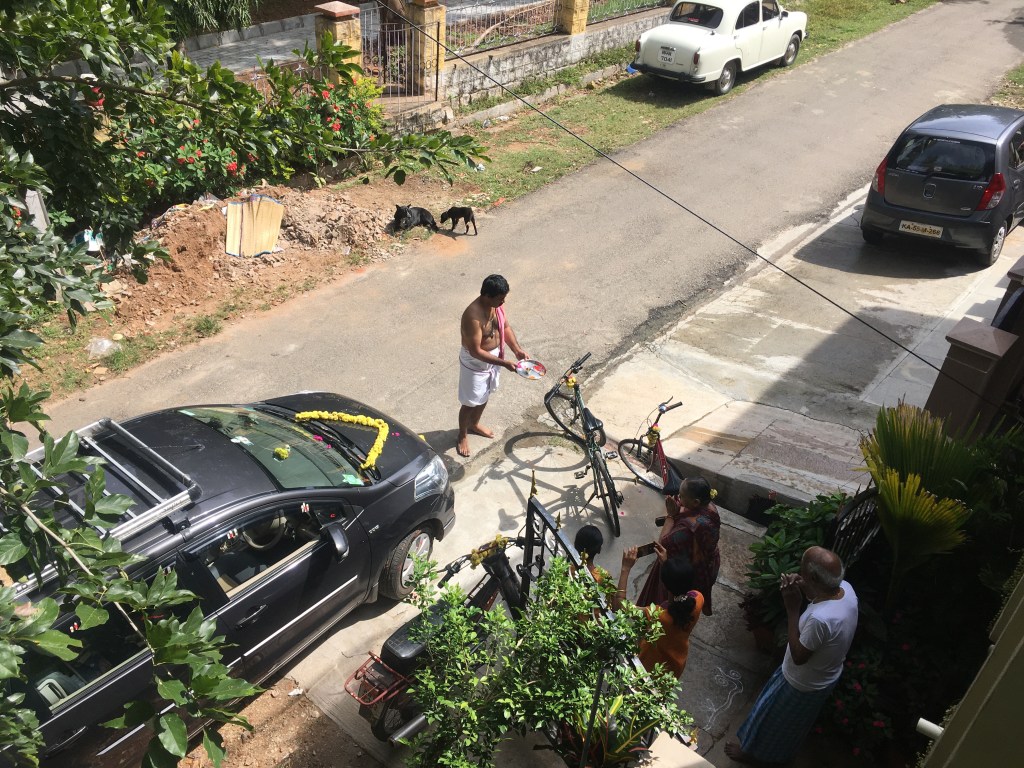 Sowbhagyhya has already instructed me to wash my Enfield, Ambassador and Specialized. She’s now done the full on Pooja.