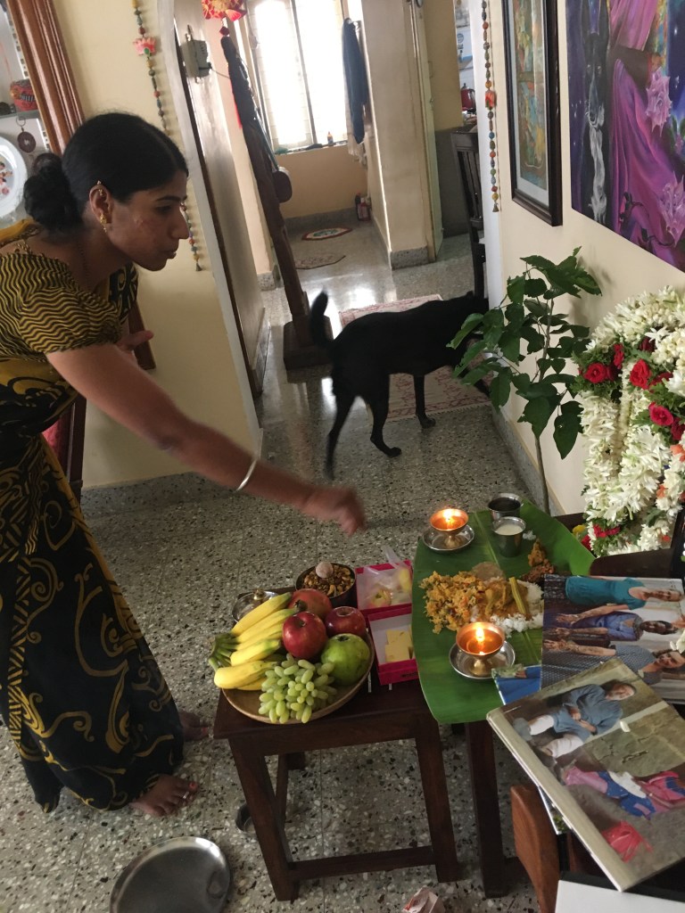 Sometimes she’ll get a little extra treatment with red or yellow dots and we’ll do a little Pooja. It’s essentially a prayer with a request to god.
