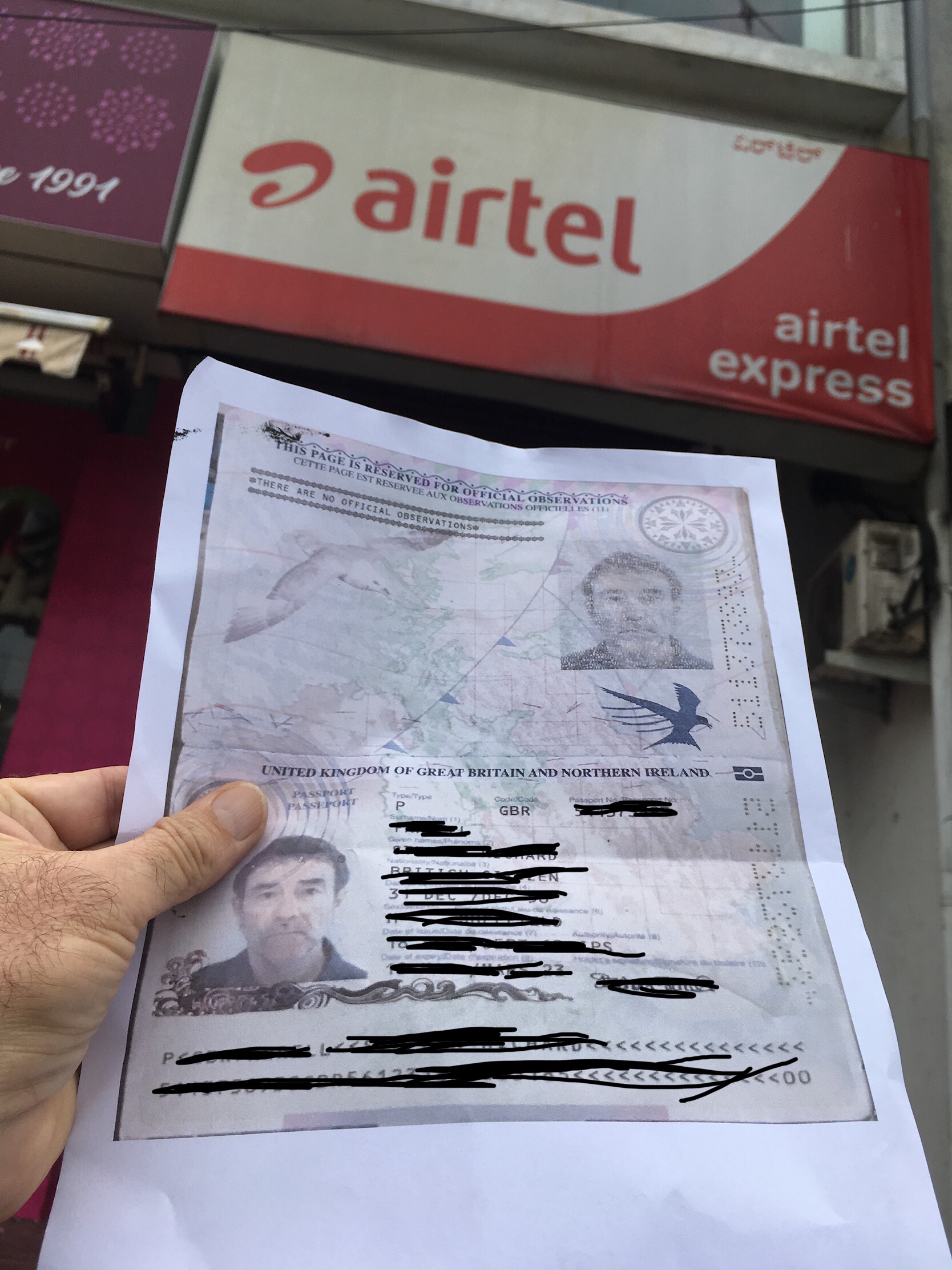 I’m at the Airtel shop, I’ve gone as my phone is not working, I’m told that the SIM card was faulty and needed replacing. For them to issue me with a replacement I need ID. I have a copy of my passport on the iPhone and after some kerfuffle get a print out. Sorry sir we need to see the original hard copy.