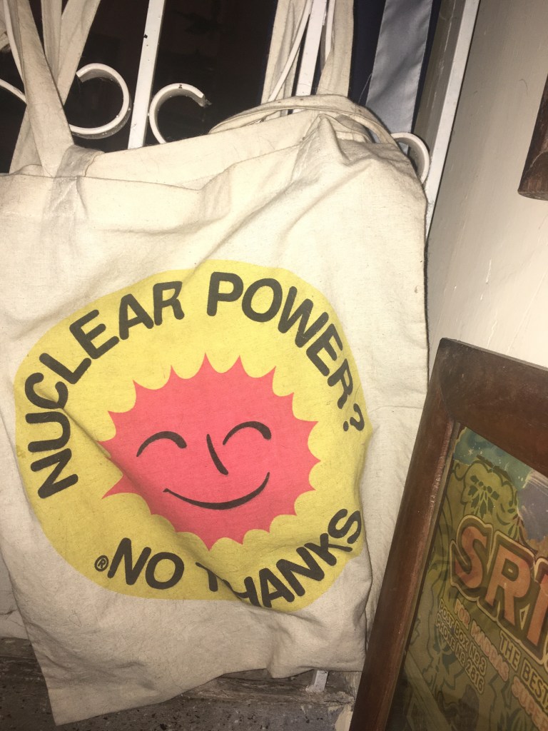 We had a young guest who works in a nuclear power station in the U.K. (it’s a dumb place, offshore of Europe) who had never heard this rallying cry from our demos in the 70’s