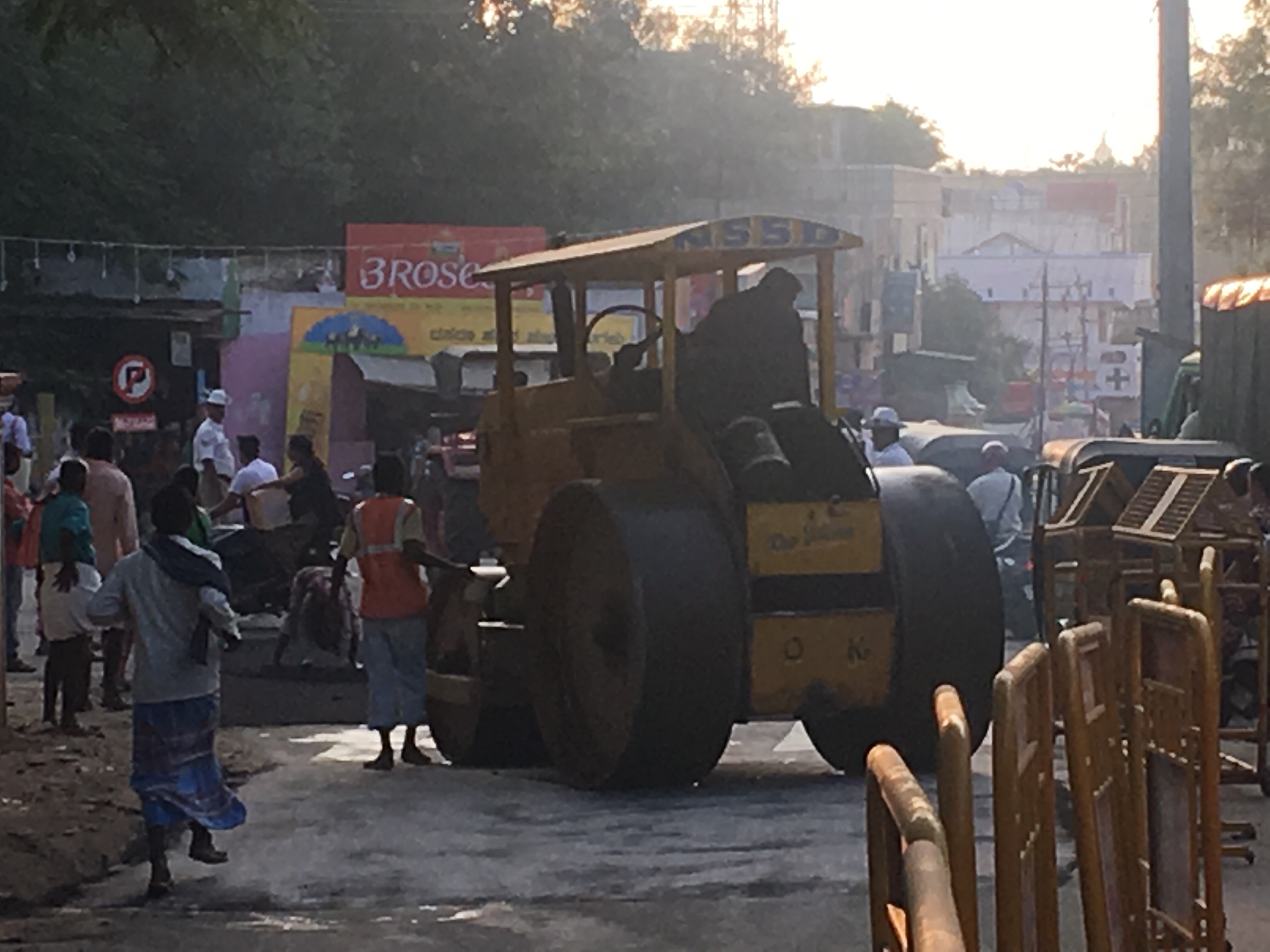 and so they decide to block half the road to lay tarmac and patch the road as part of the preparation for the big event.