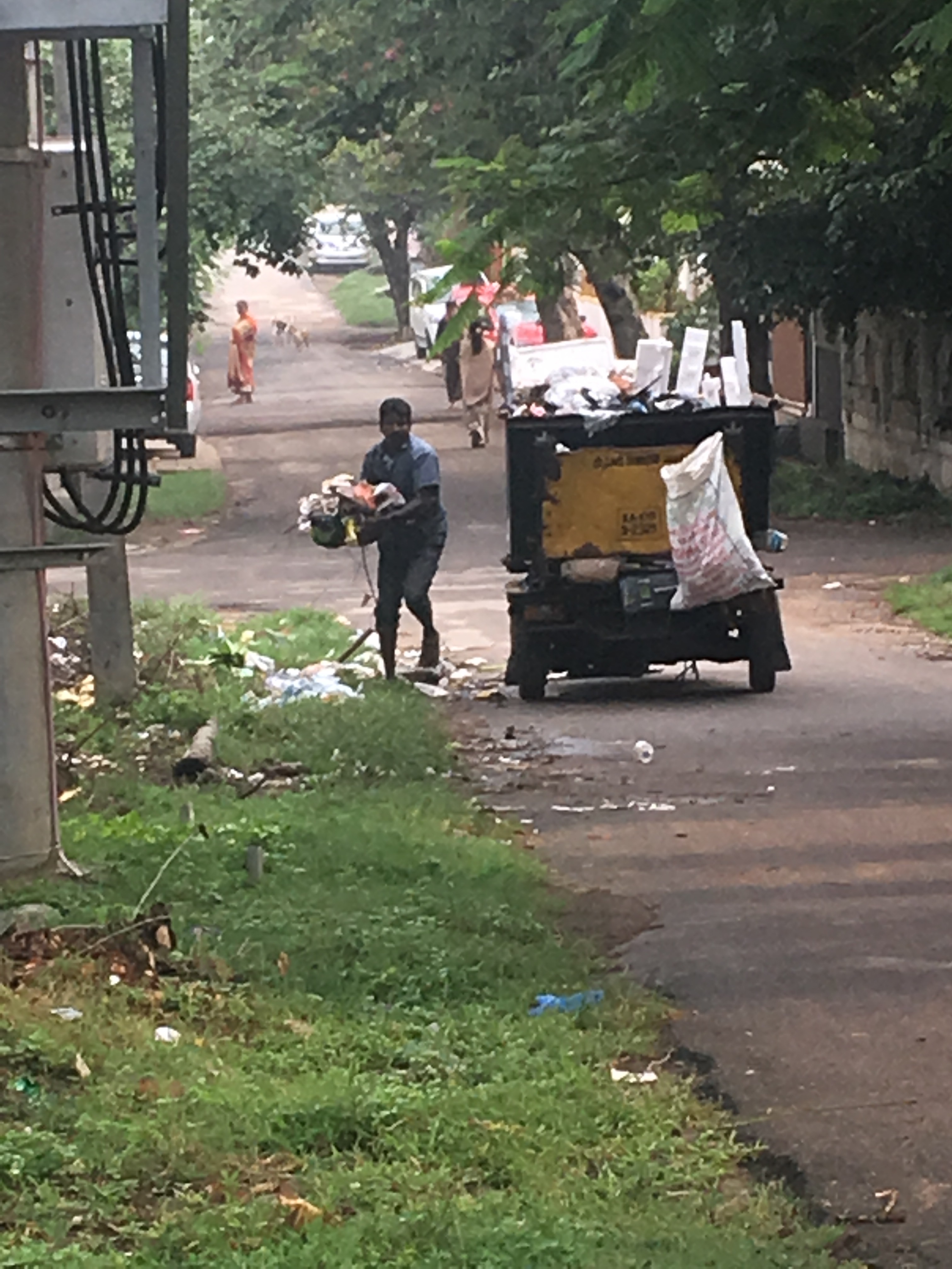 The Pourakarmikas who clean our streets and collect our rubbish are gradually coming back to work. They’ve been on a strike related to conditions of employment (promised contracts not having materialised) and pay.