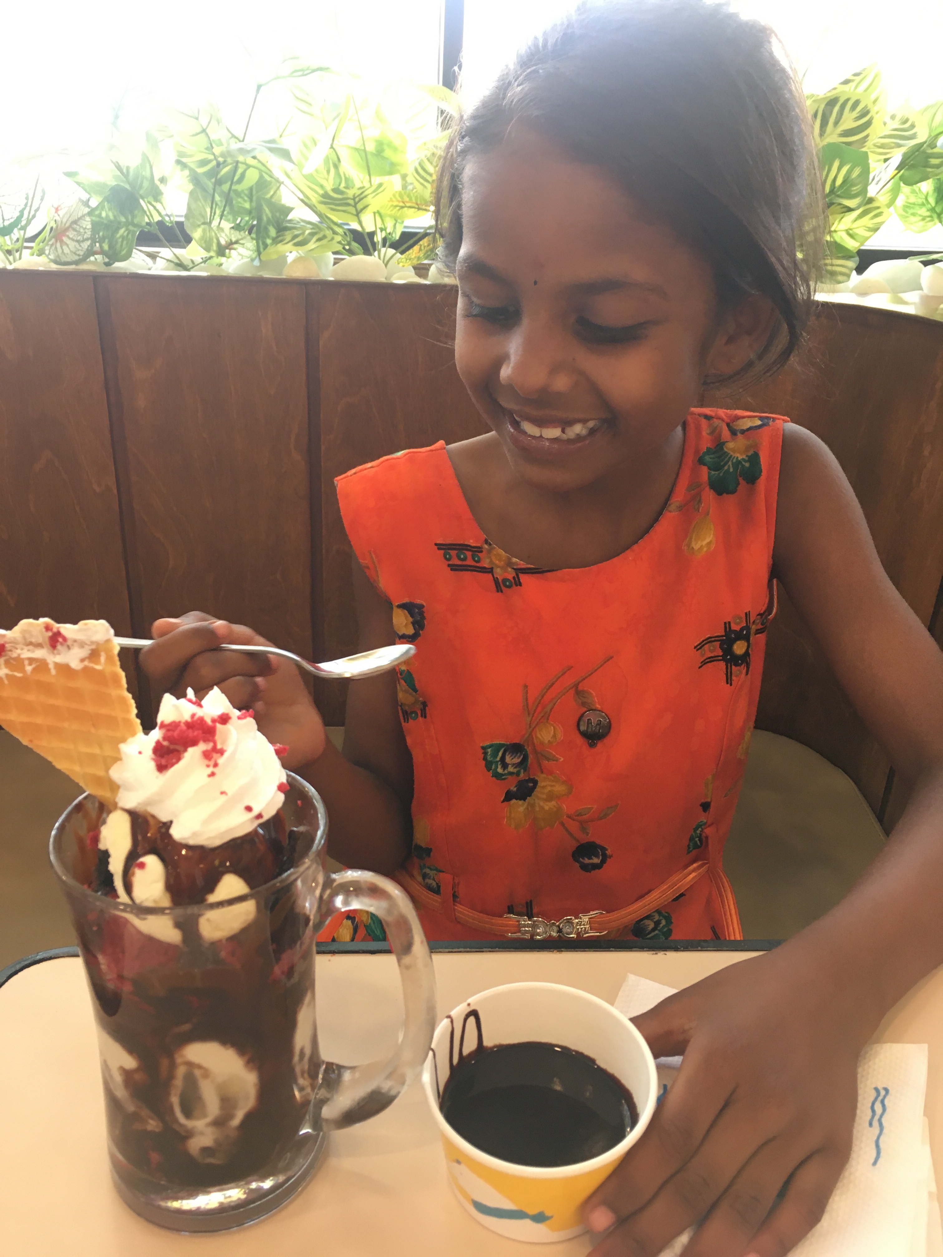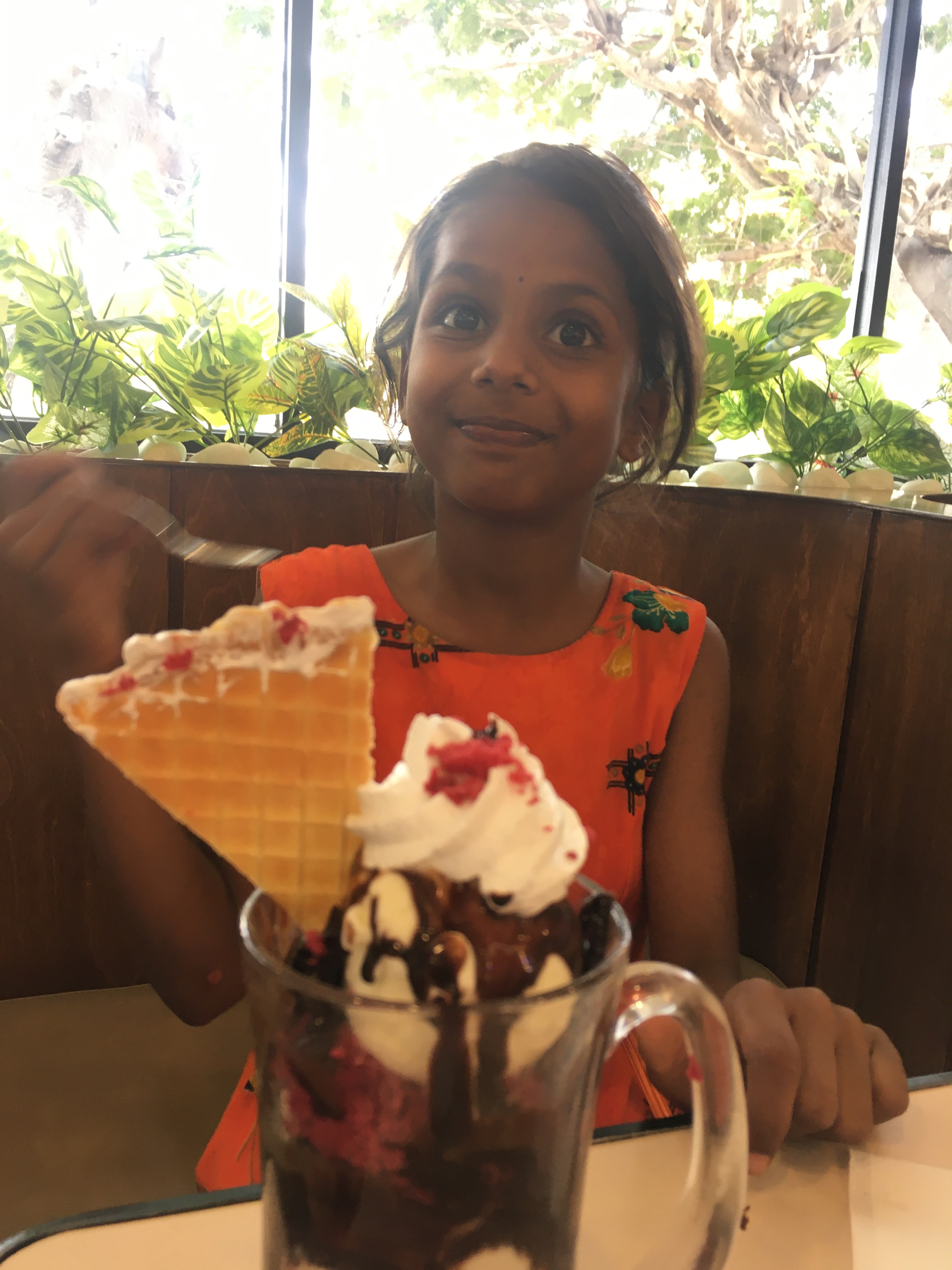 The ice creams were too much for the girls and they couldn’t finish. Each cost almost a daily wage.