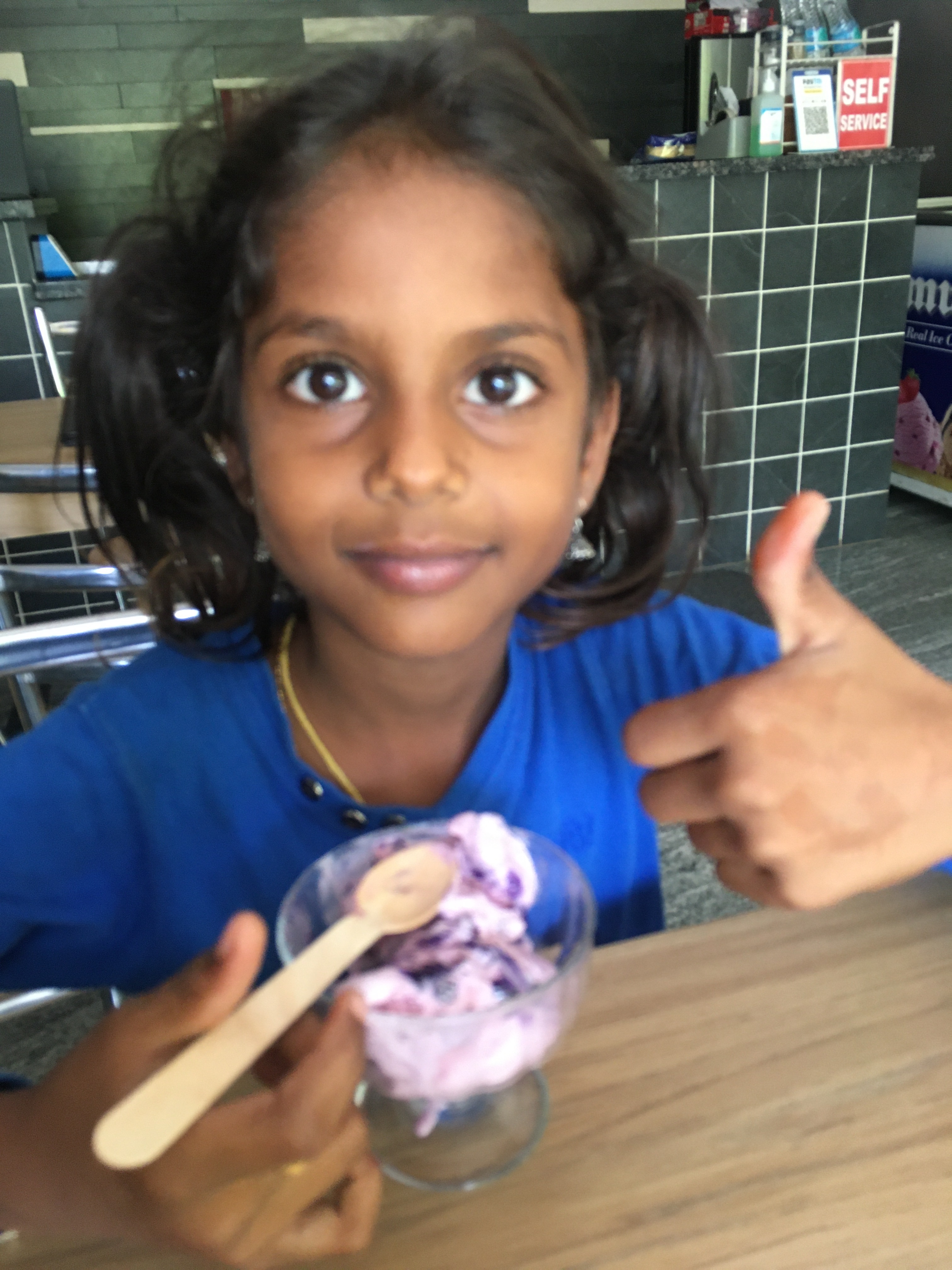 We’ve already established a few goody rituals. Stopping for Pani Puri or rice bhath on the street or an ice cream at our usual cafe or as today the whole lot plus roti, dhal and fruit salad back at my house.