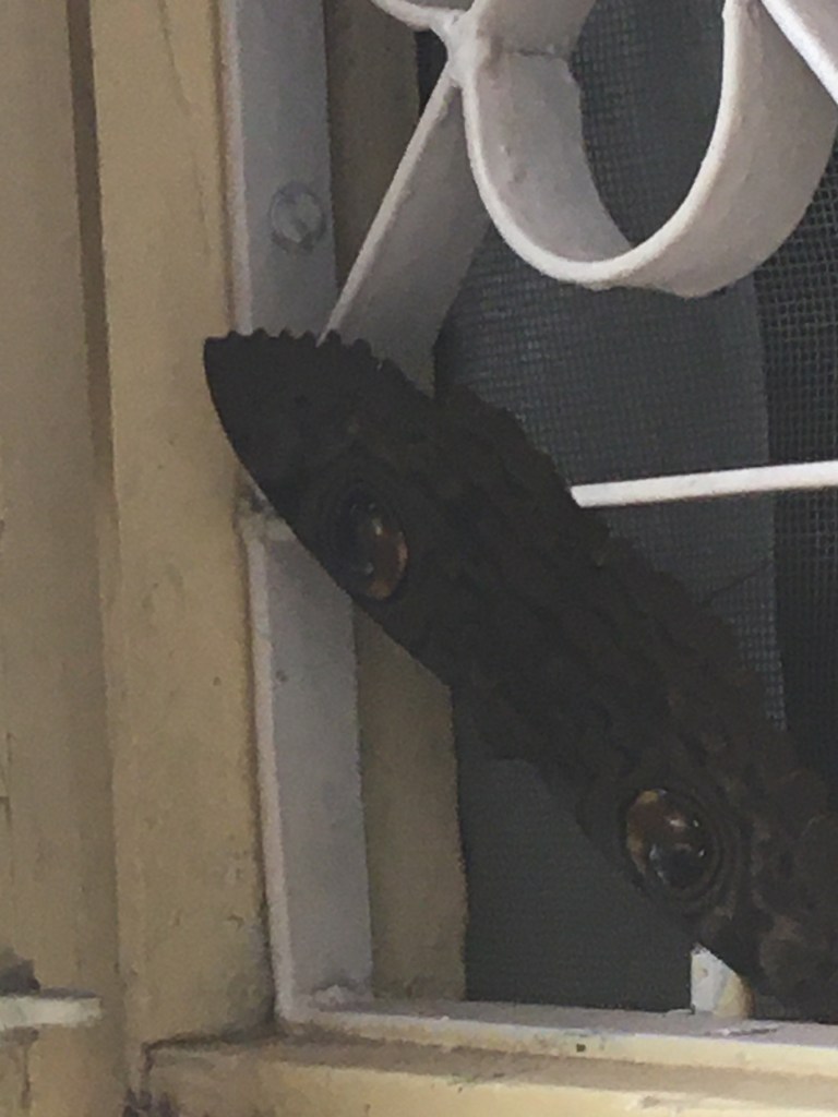 An hour later Lucie and returned home to it resting on the door knob. only to surprise me again and land on one of our windows.