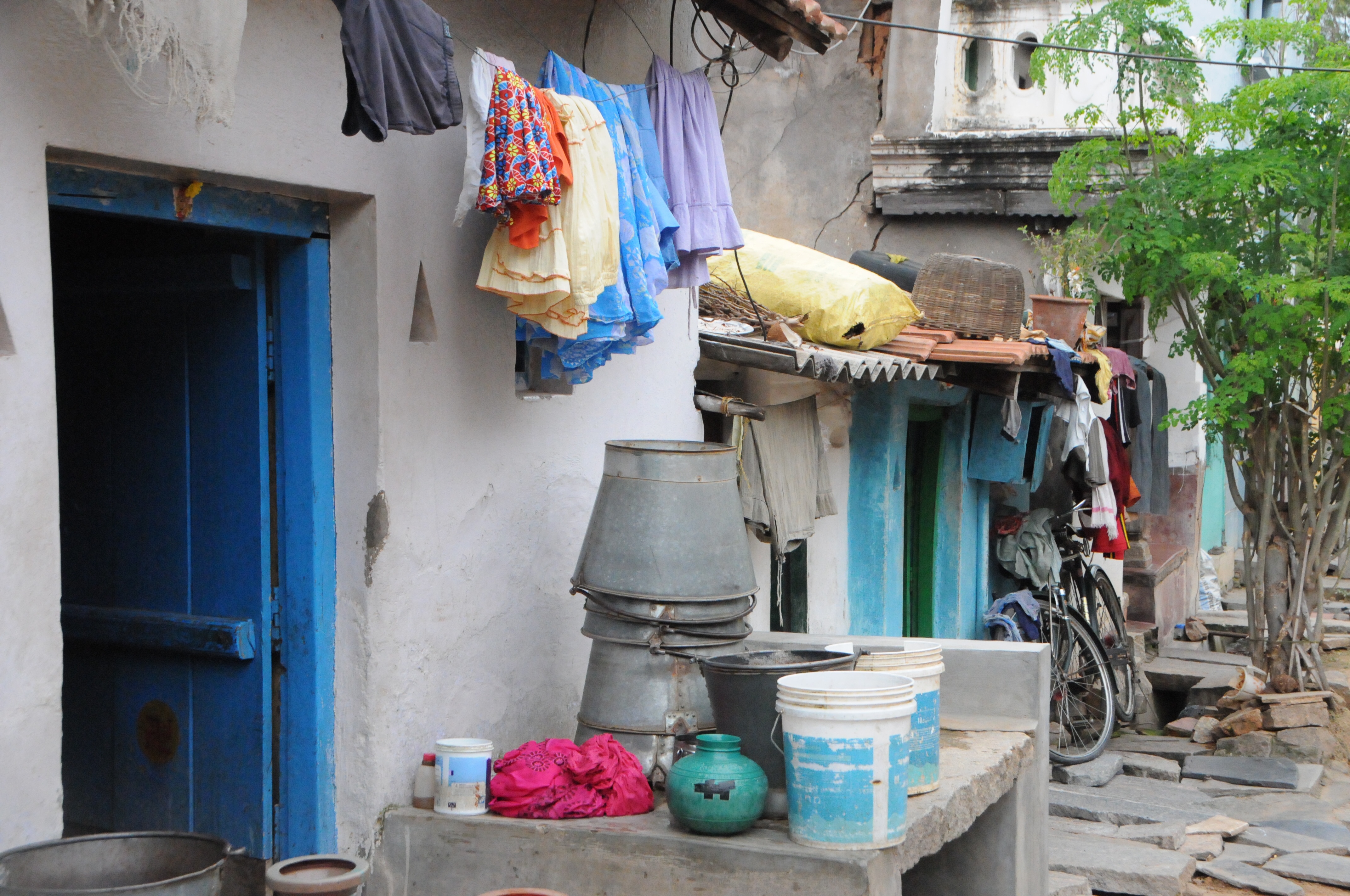 Everyone saw and experienced something subtly different. Maybe it was the different housing ranging from the old mud single room dwelling with its country tile roof, or the three storey concrete towers; the clothing, the women washing the front of their house, dealing with the children, the smiles, the welcoming, the dust, the noise, the smells, the chilli and lemon hanging in the doorway, two wheelers, the multiple designs of Rangoli, the auto rickshaws and the old ambassador, the hanging Mango leaves left from a recent festival, the constant presence of Gods and their many temples and symbols. That cacophony was reminiscent of all that is India, where different things jostle for attention, cheek by jowl.