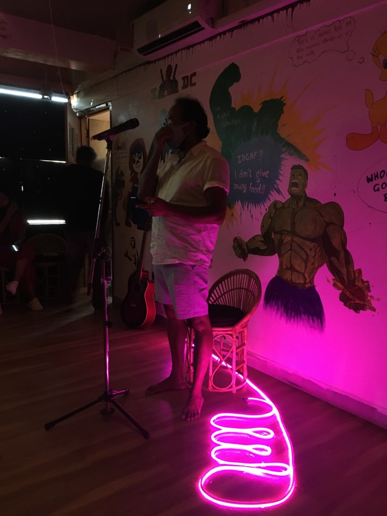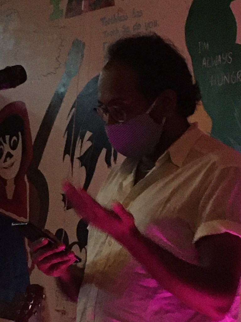 An open mic event at Dreamers Cafe in Mysore great young audience entertained with poetry, singing, guitar, flute, jokes and storytelling.