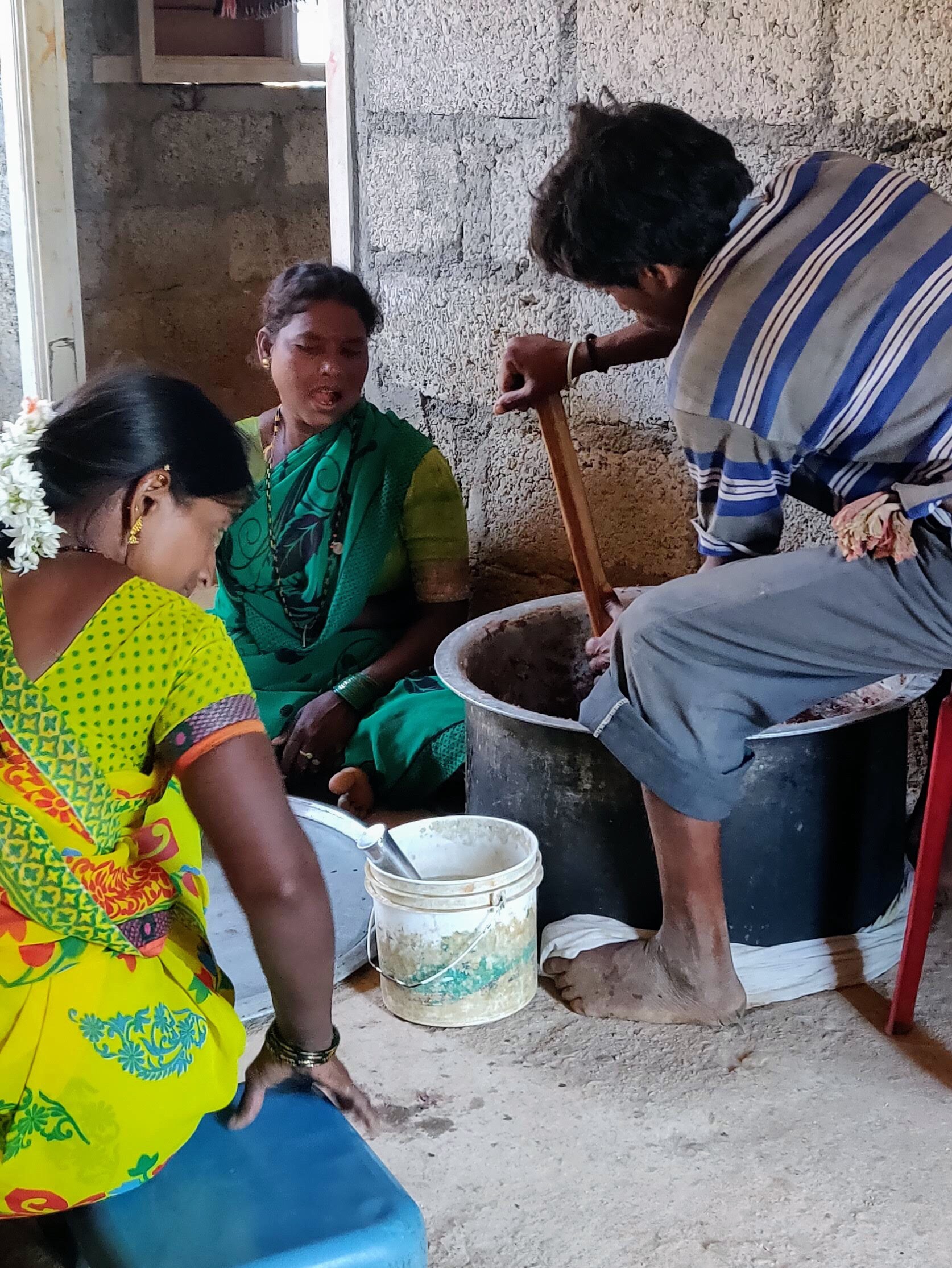 As we arrive the cooking of curries (plenty of meat) and rolling of the Ragi balls is being completed.
