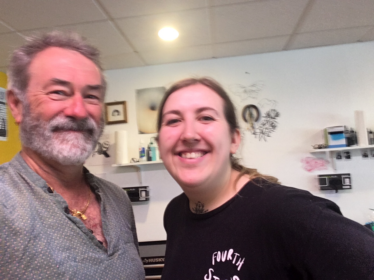Stephen with the artist the FourthCup aka Vanessa in Vancouver helping recognise fond memories